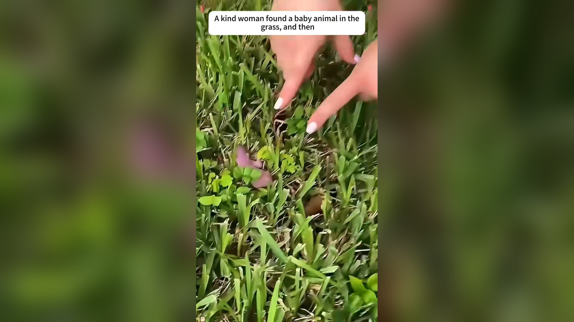 L2004002_kind woman found baby animal in grass,