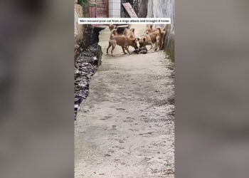 L2504001_Man rescued fox cub stuck in fence brought