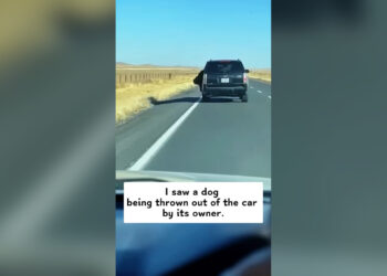 L2504002_saw dog being thrown out of car by its own